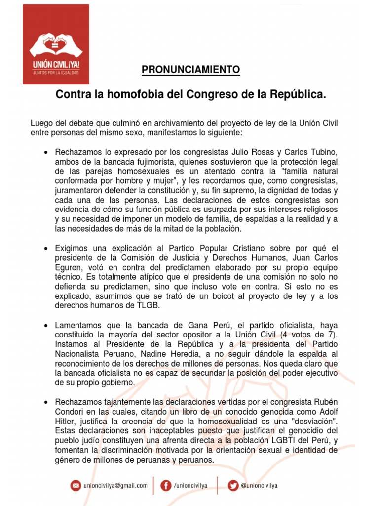 Luego del debate que culmin en archivamiento del proyecto de ley de la Unin Civil