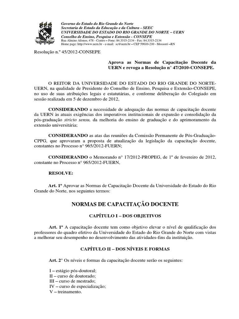 Art. 1 Aprovar as Normas de Capacitao Docente da Universidade do Estado do Rio