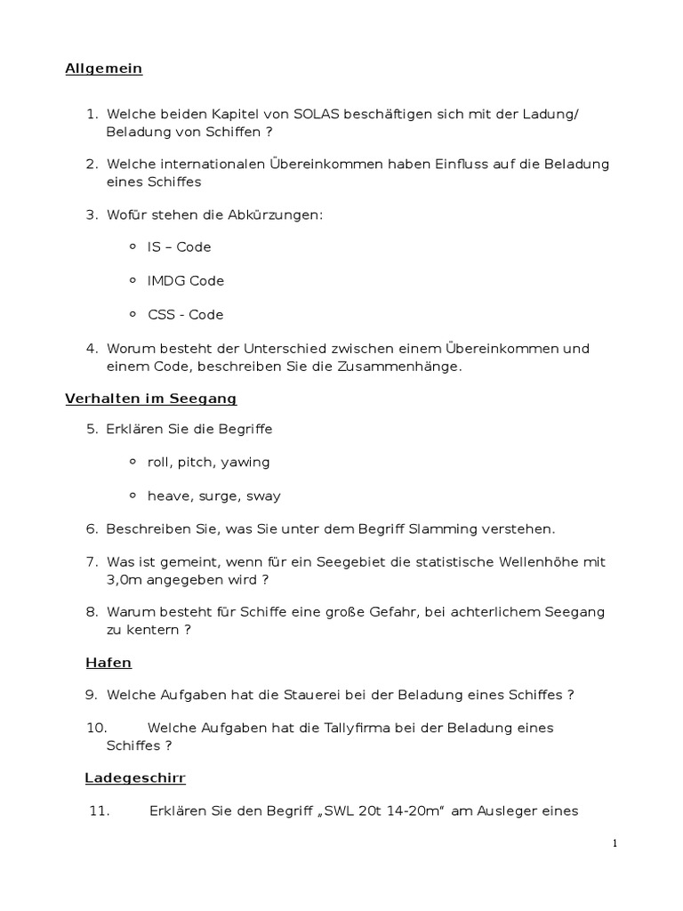 1. Welche beiden Kapitel von SOLAS beschftigen sich mit der Ladung/