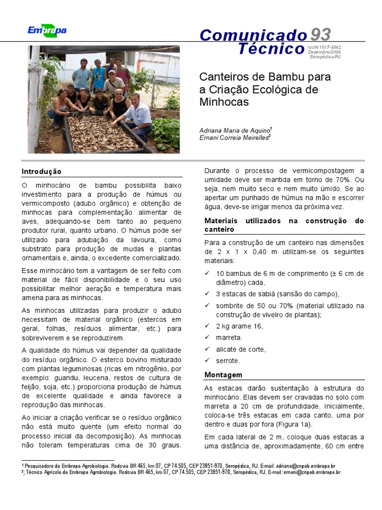 Tcnico Agrcola da Embrapa Agrobiologia. Rodovia BR 465, km 07, CP 74.505, CEP 23851-970, Seropdica, RJ. E-mail: ernani@cnpab.embrapa.br