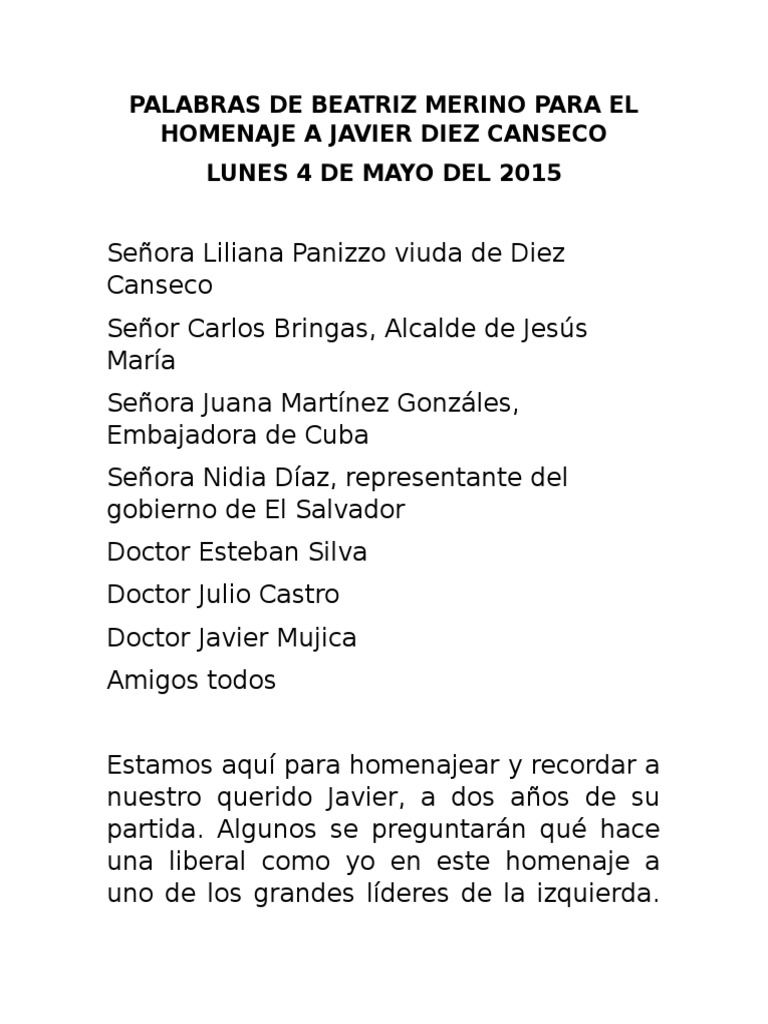 PALABRAS DE BEATRIZ MERINO PARA EL