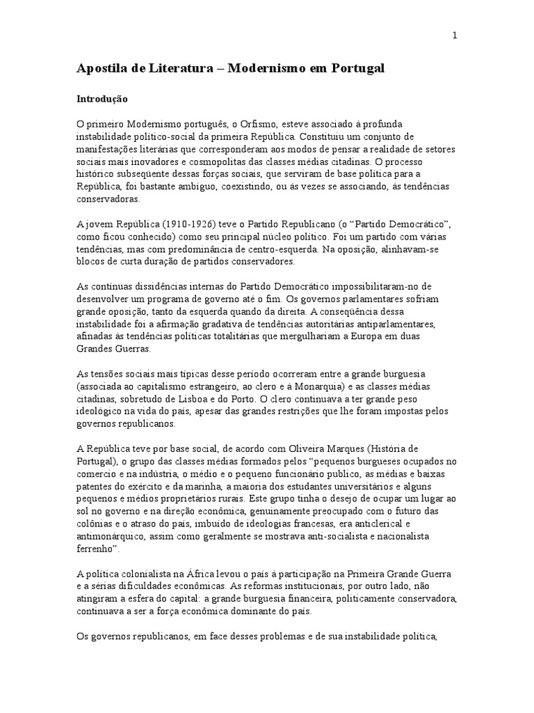 2. Como denominada a primeira fase do Modernismo portugus? Justifique sua