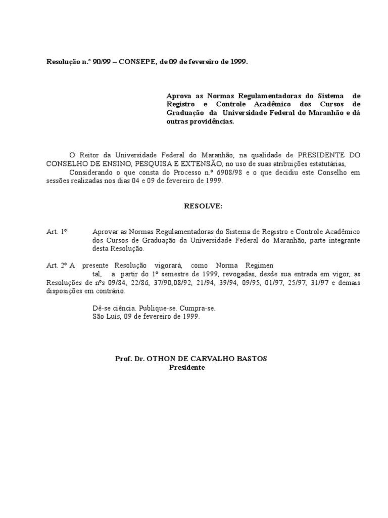 Resoluo n. 90/99 CONSEPE, de 09 de fevereiro de 1999.