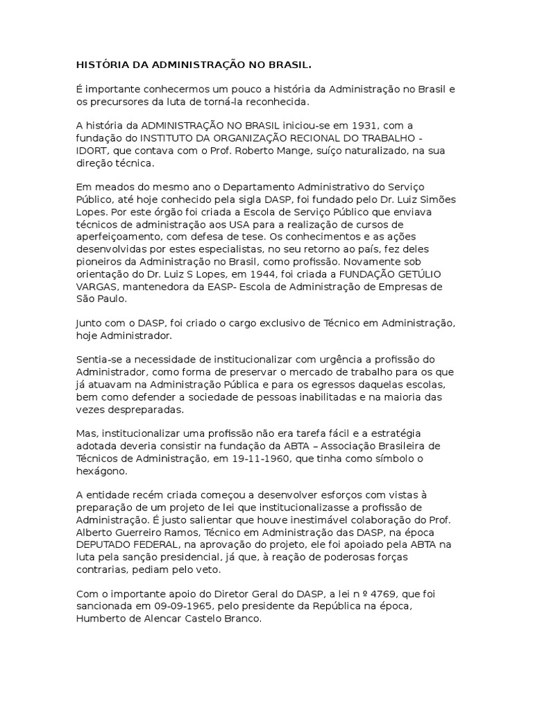 HISTRIA DA ADMINISTRAO NO BRASIL.