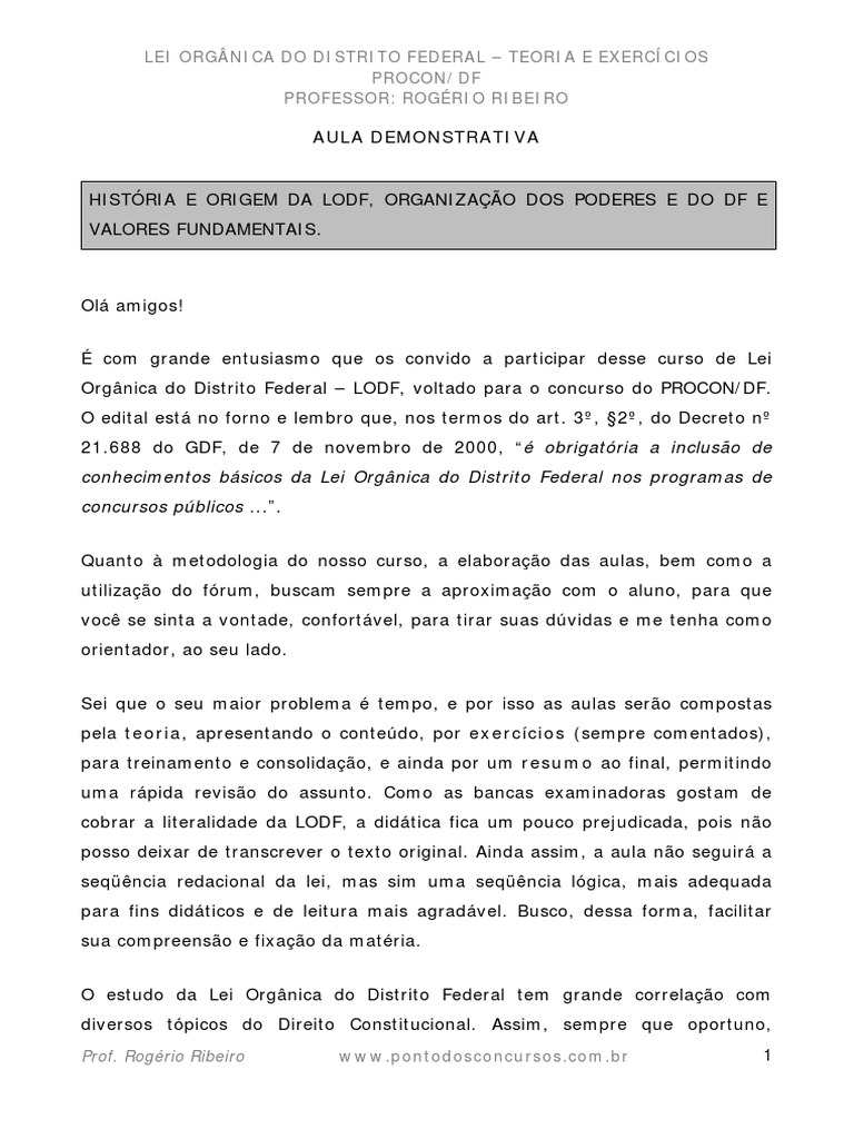 LEI ORGNICA DO DISTRITO FEDERAL TEORIA E EXERCCIOS
