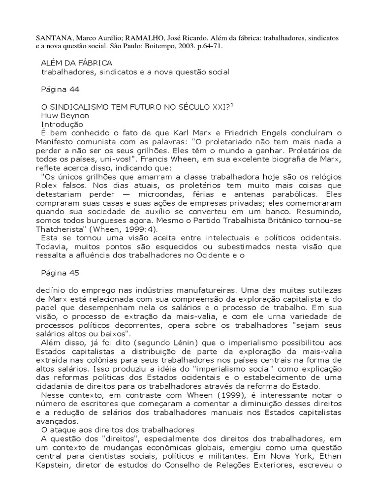 e a nova questo social. So Paulo: Boitempo, 2003. p.64-71.