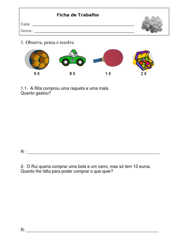 1-Conta o dinheiro e regista no rectângulo respectivo.