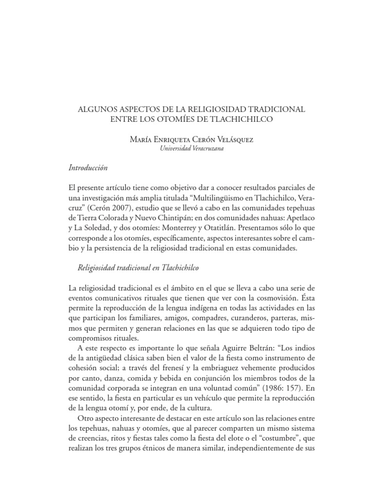 corresponde a los otomes, especficamente, aspectos interesantes sobre el cambio y la persistencia de la religiosidad tradicional en estas comunidades.