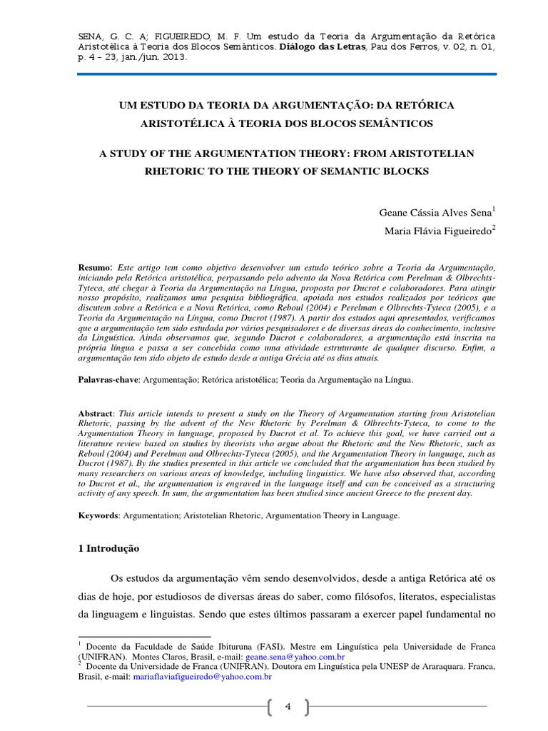 Diante disso, neste artigo, realizamos um estudo sobre a Teoria da Argumentao,