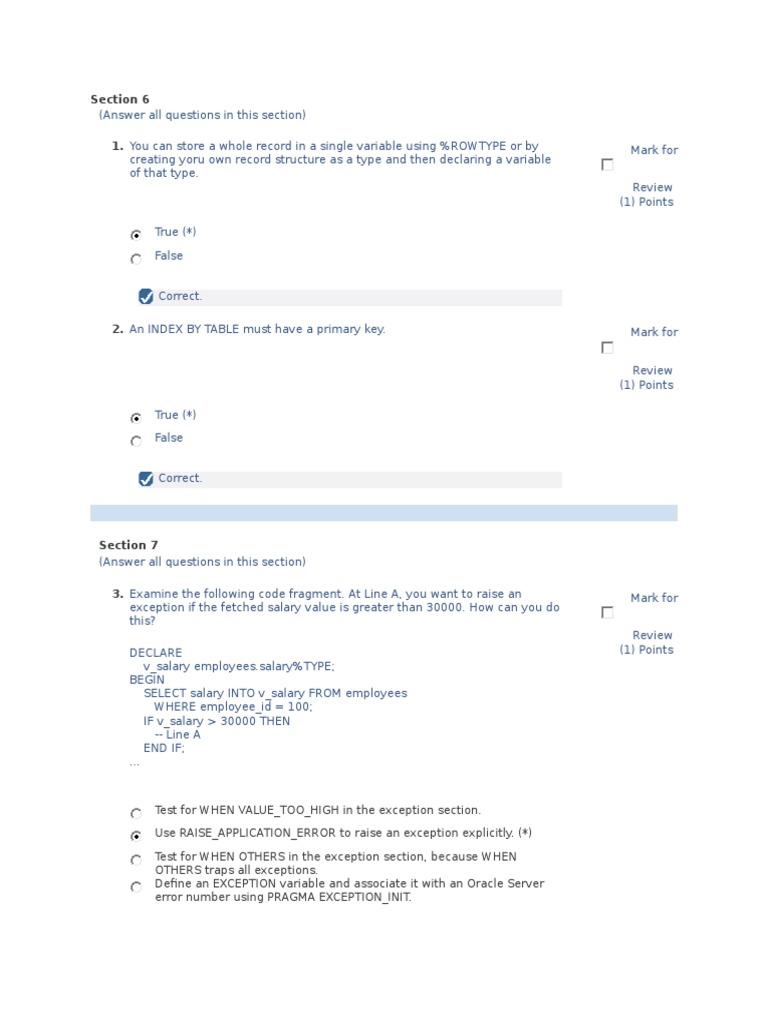 10. Which of the following best describes a PL/SQL exception?