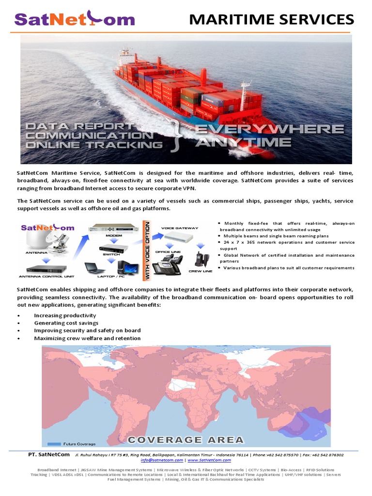 SatNetCom Maritime Service, SatNetCom is designed for the maritime and offshore industries, delivers real- time,