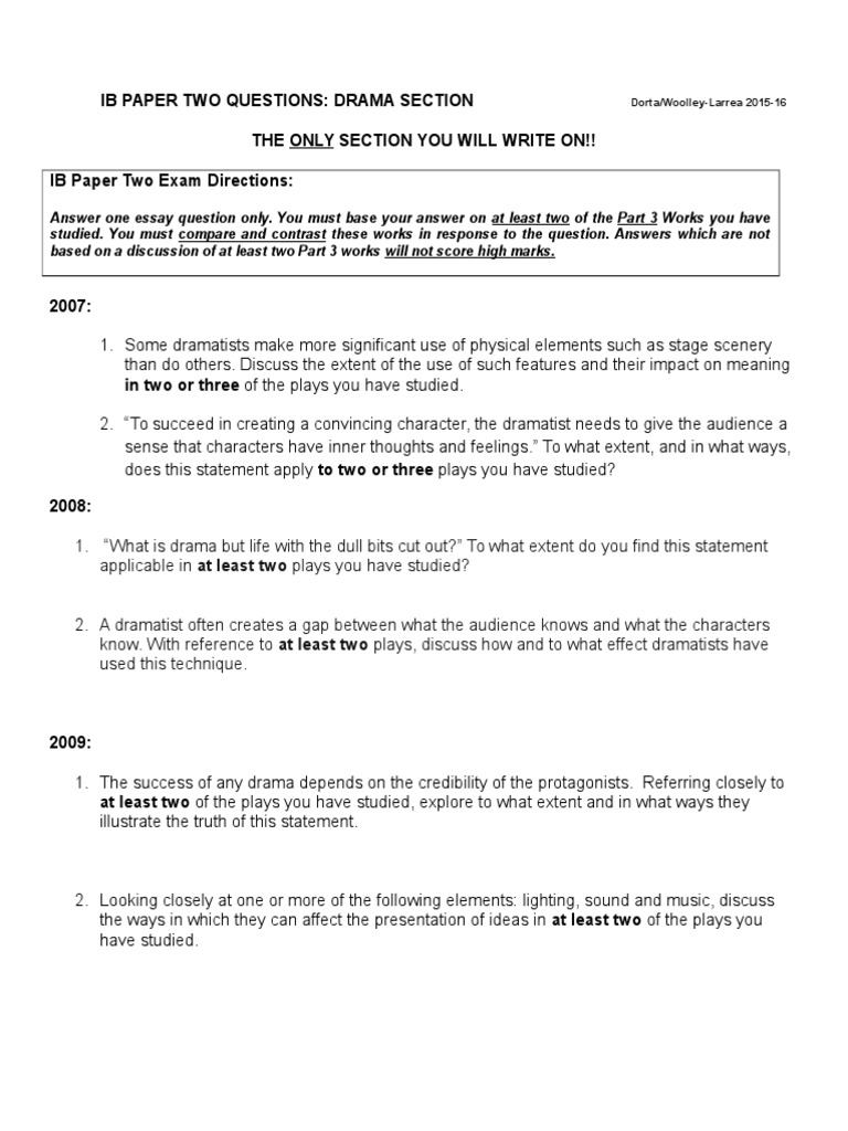 least two of the plays you have studied.