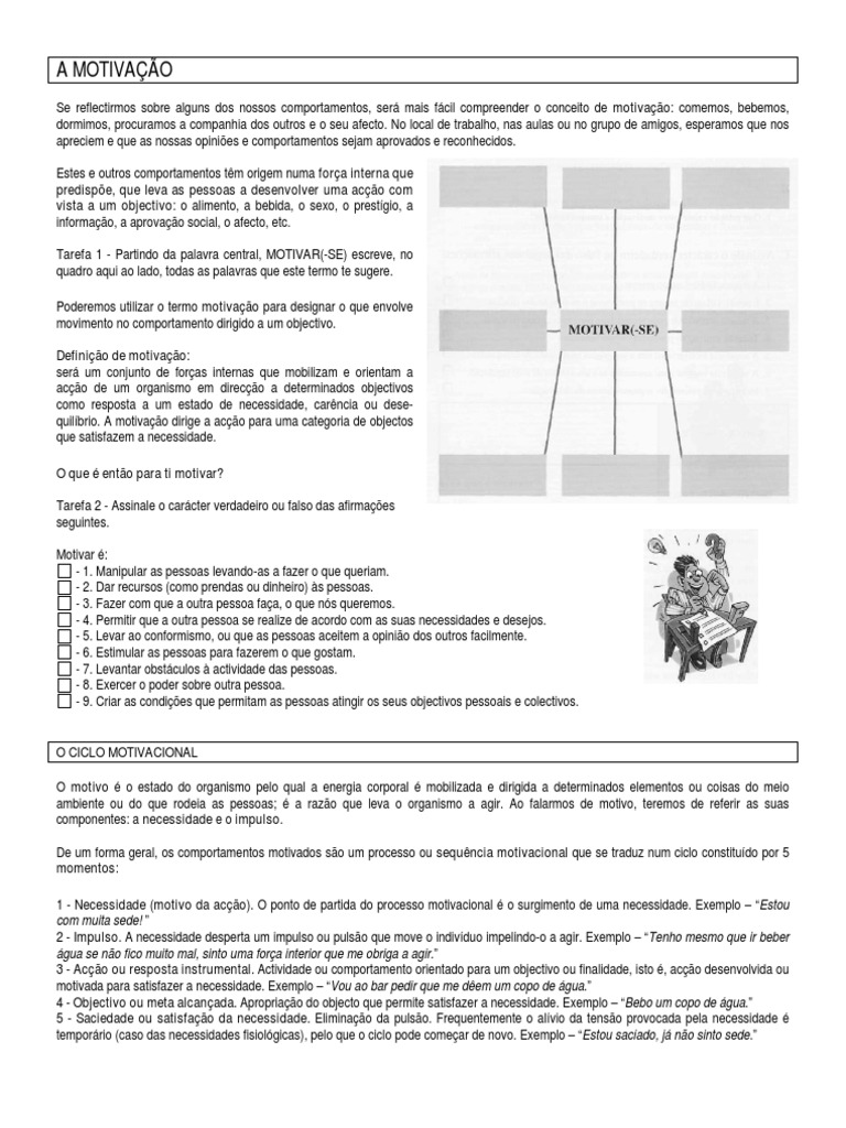 ambiente ou do que rodeia as pessoas; é a razão que leva o organismo a agir. Ao falarmos de motivo, teremos de referir as suas