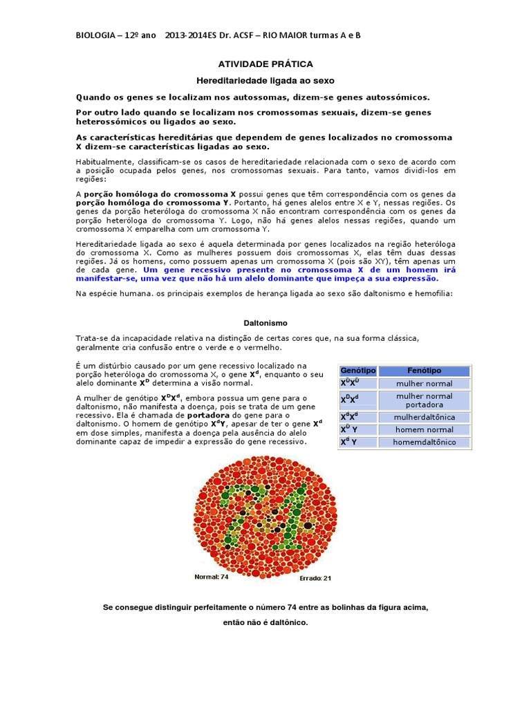 ATIVIDADE PRÁTICA Hereditariedade ligada ao sexo