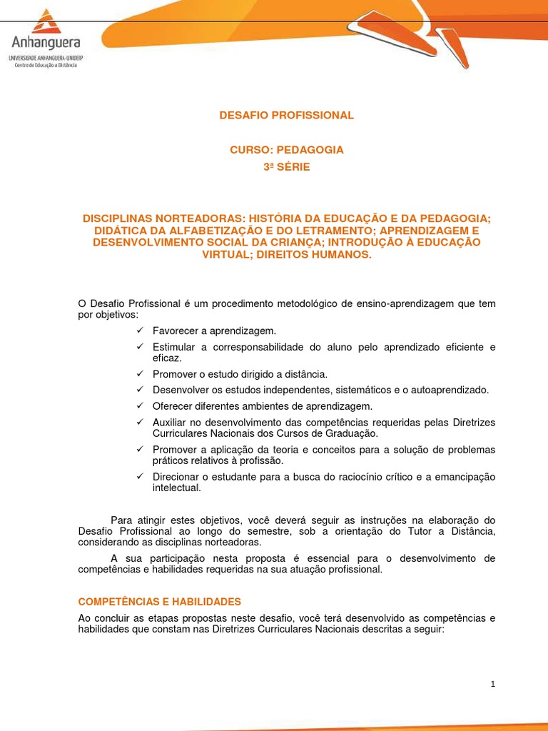 Postar no Ambiente Virtual a verso final do Desafio Profissional em arquivo nico no