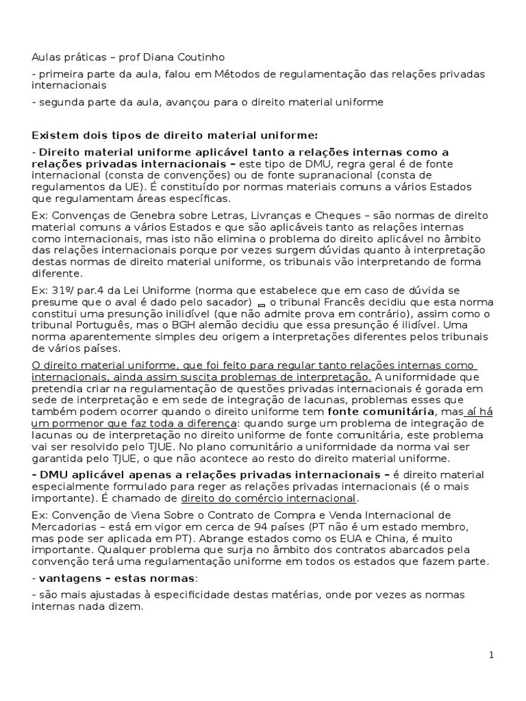 Ex: nos contratos de consumo internacionais costume ser aceite a possibilidade de