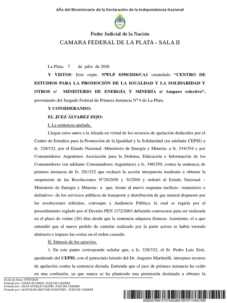 Consumidores Argentinos, agravindose por considerar que el propio juez de primera