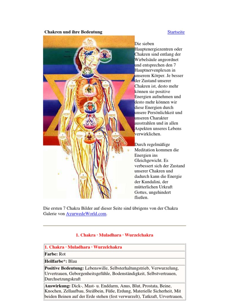 Die ersten 7 Chakra Bilder auf dieser Seite sind übrigens von der Chakra