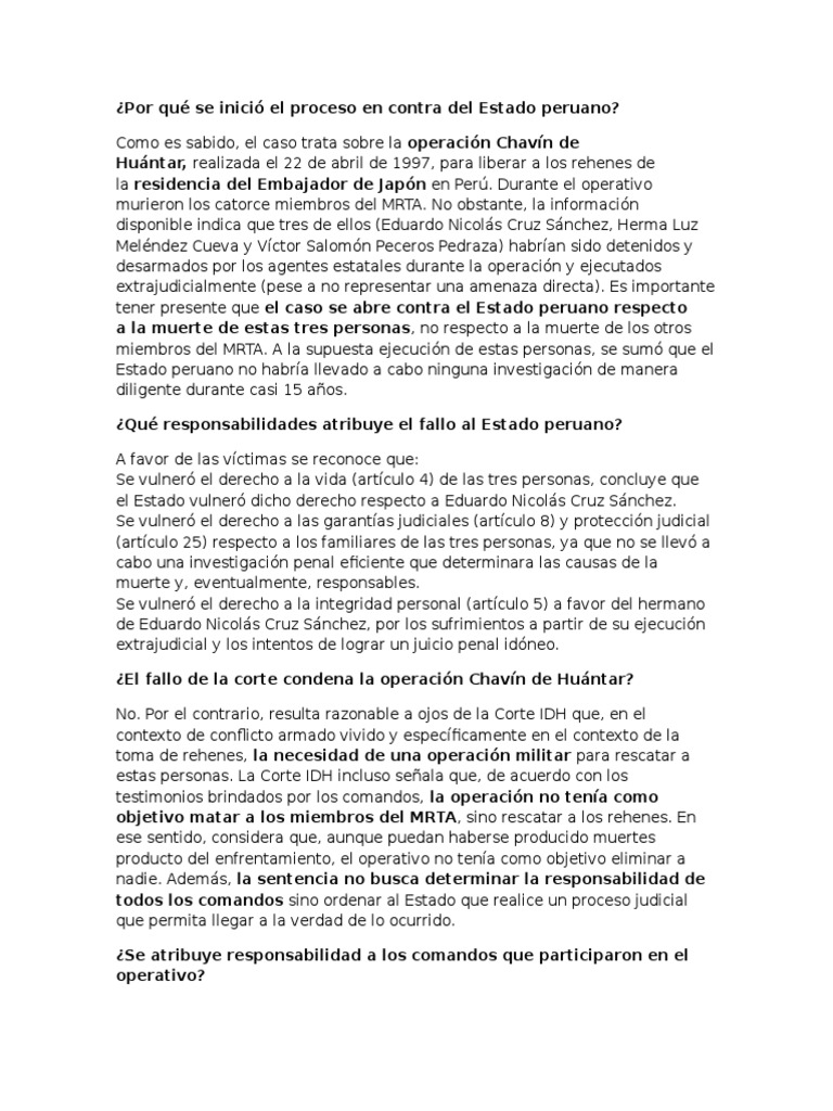 perder el litigio por el Caso Chavn de Huntar en la Corte Interamericana de