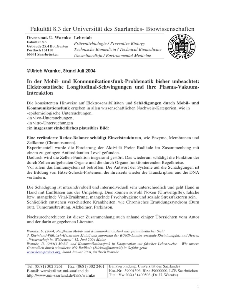 Warnke, U. (2004) Warum knnen kleinste Leistungsflussdichten elektromagnetischer Energie groe Effekte am