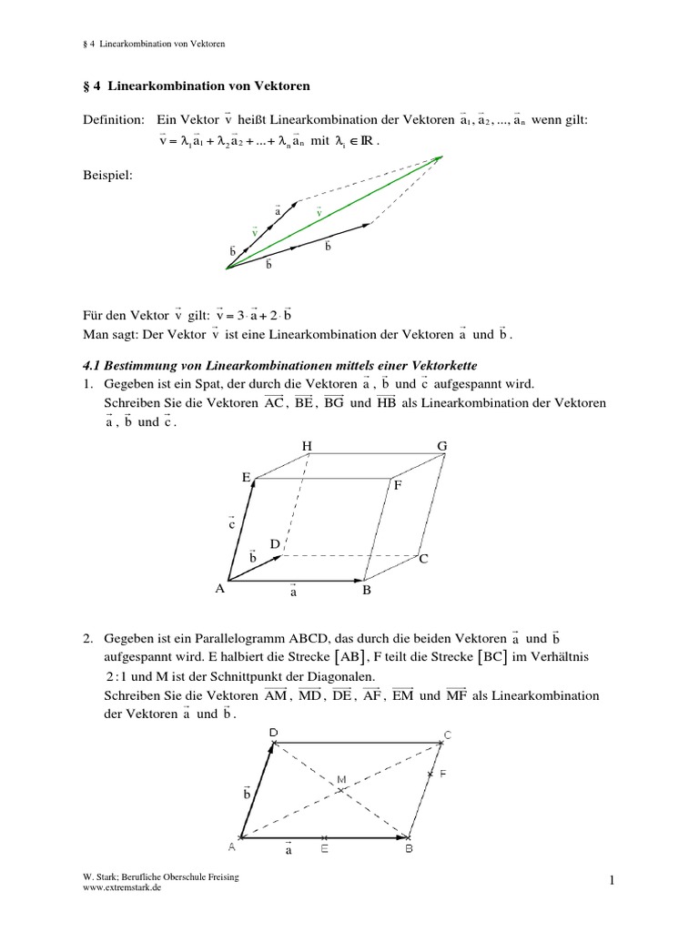 4.2 Rechnerische Bestimmung von Linearkombinationen