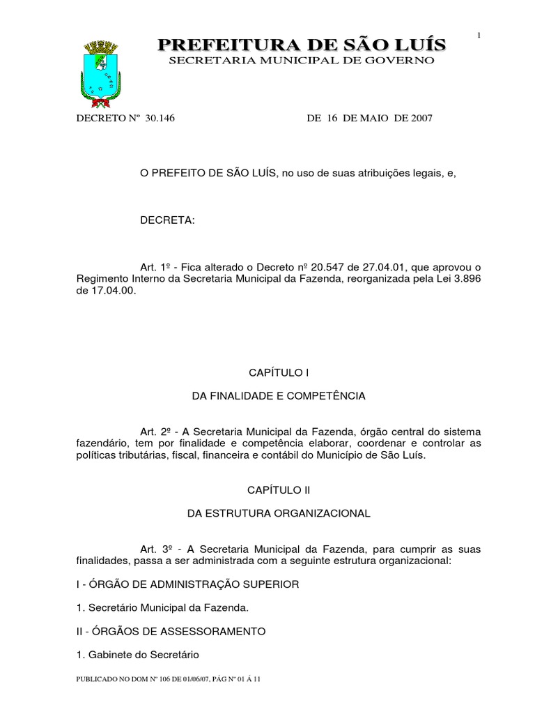 PUBLICADO NO DOM N 106 DE 01/06/07, PG N 01 11