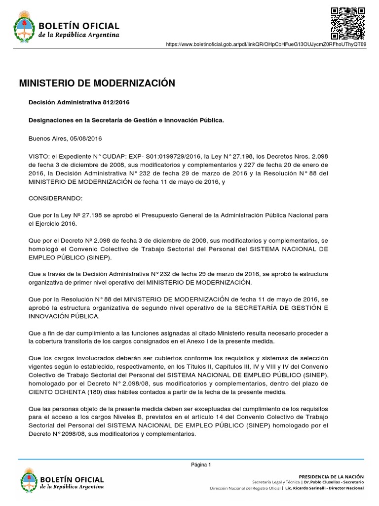 MINISTERIO DE MODERNIZACIN