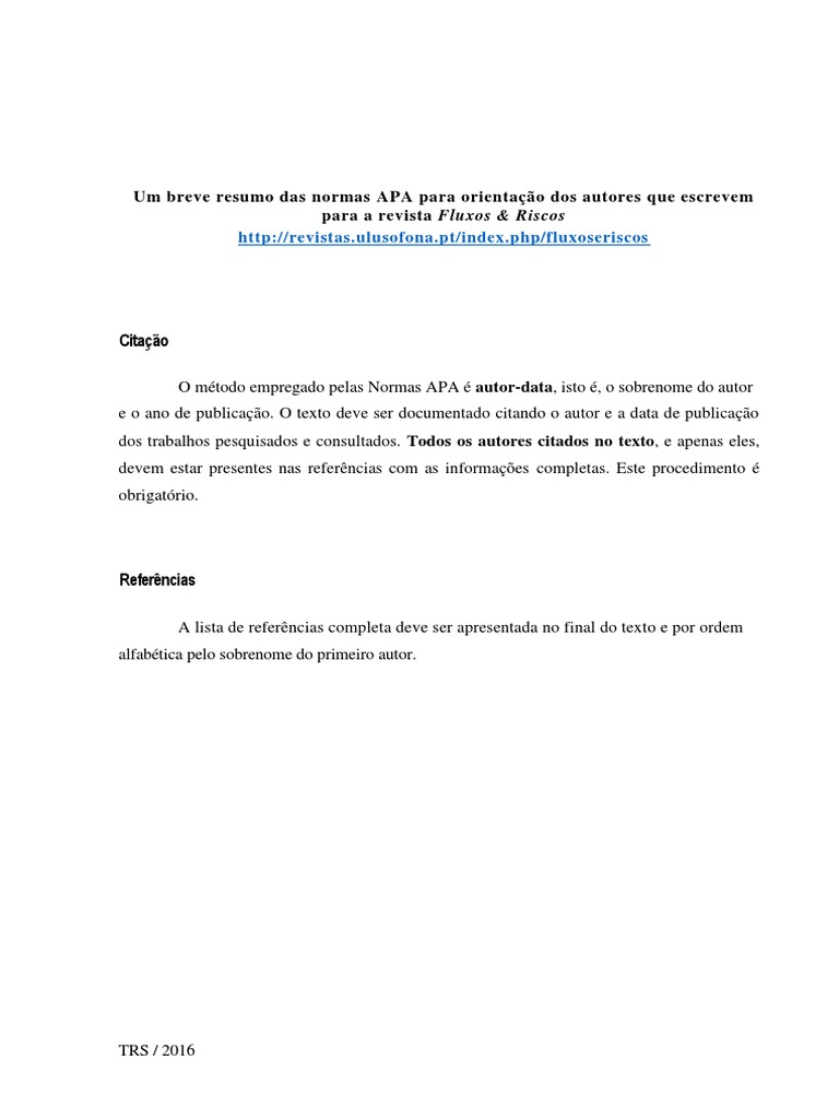 Um breve resumo das normas APA para orientao dos autores que escrevem
