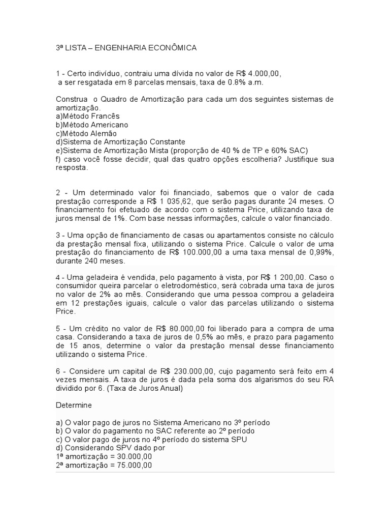 3 LISTA ENGENHARIA ECONMICA