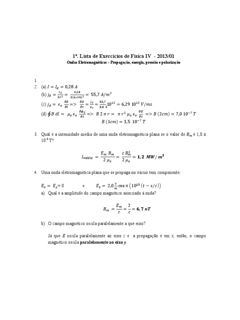 1ª. Lista de Exercícios de Física IV - 2013/01