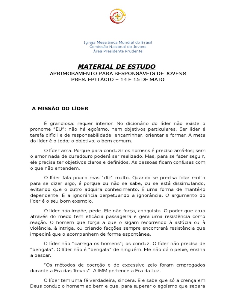 VOCS SO LDERES JOVENS, NO SO? LIDER AQUELE QUE SE