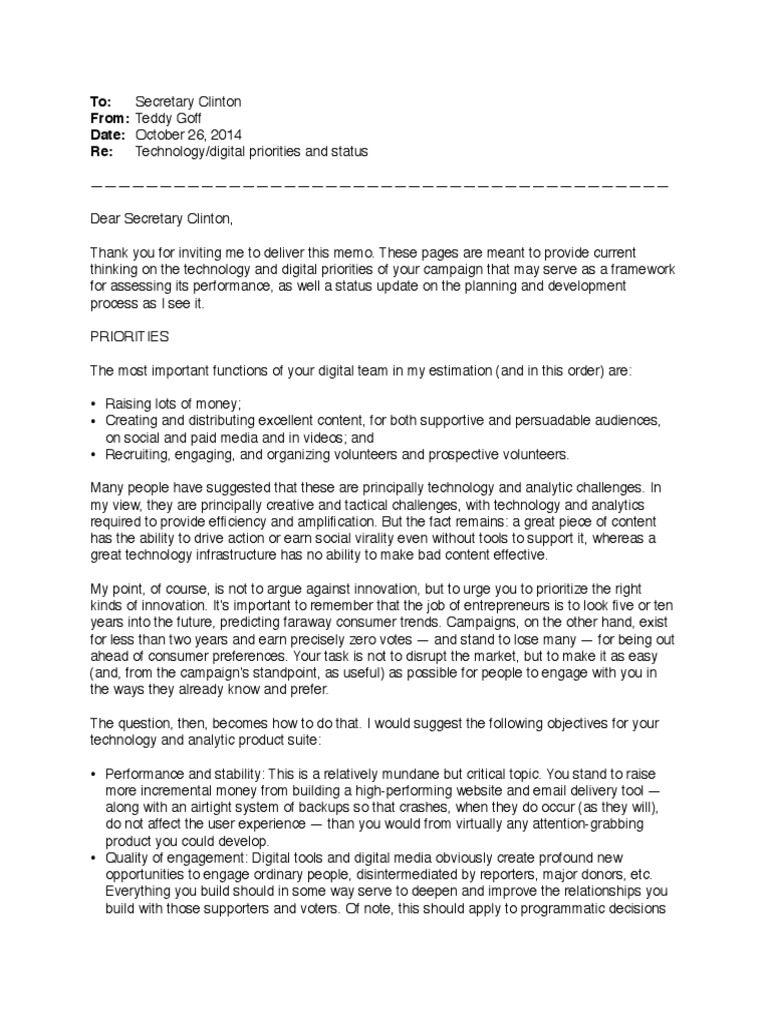 thinking on the technology and digital priorities of your campaign that may serve as a framework