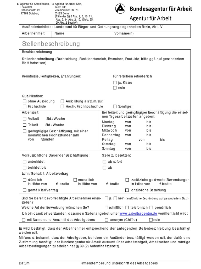 Mir/uns ist bekannt, dass der Arbeitgeber, bei dem ein Auslnder beschftigt werden soll, der dafr eine