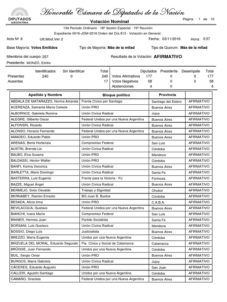 Expediente 0016-JGM-2016 Orden del Da 813 - Votacin en General.