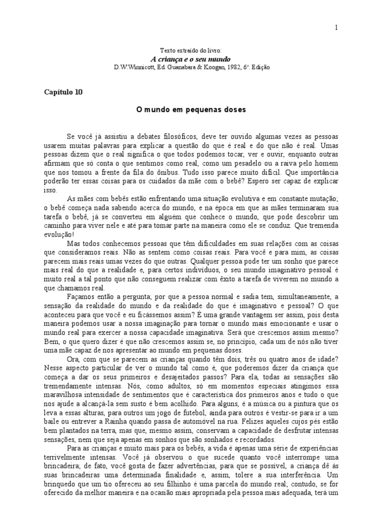 mesma adaptao delicada s necessidades exatas. Para a criana com sorte, o mundo comea