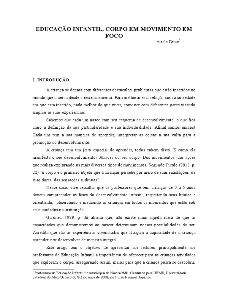 PICOLO. N. V. L. Corpo em Movimento na Educao Infantil. 1 Edio. So Paulo.