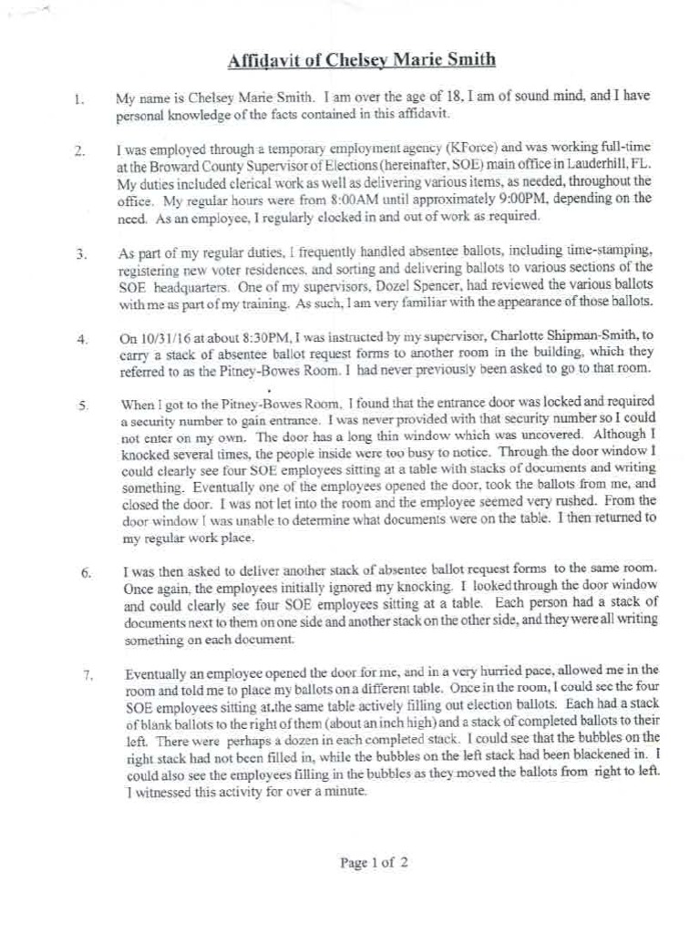 Affidavit of witness to voter Fraud in Broward County, Florida