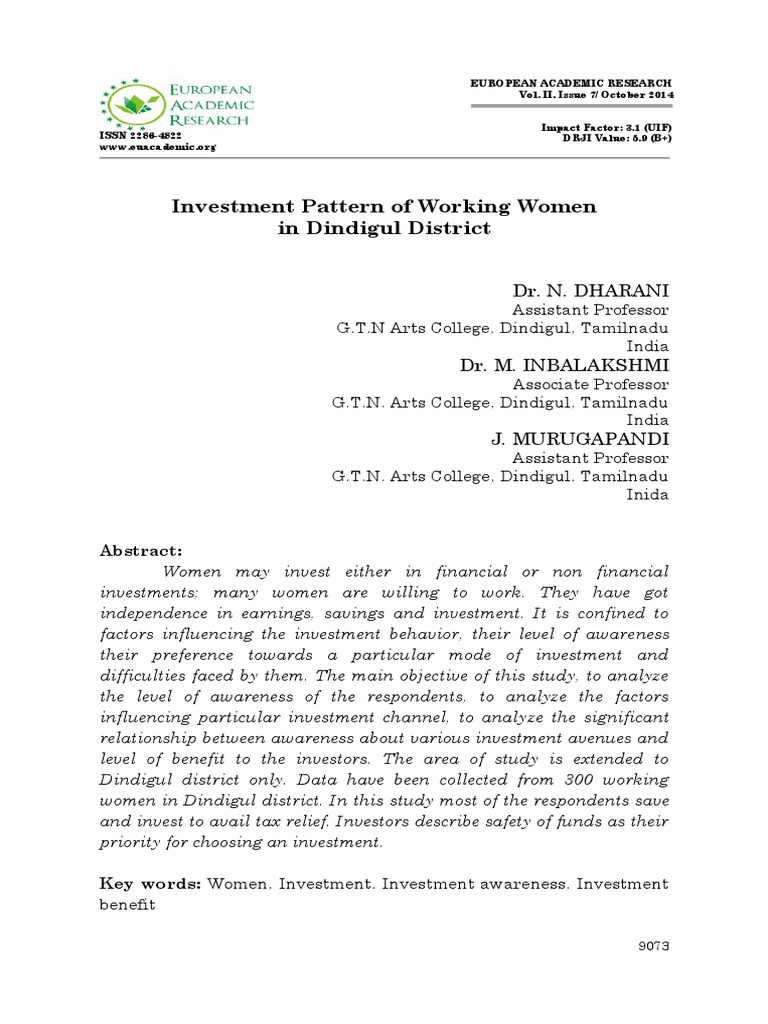 Key words: Women, Investment, Investment awareness, Investment