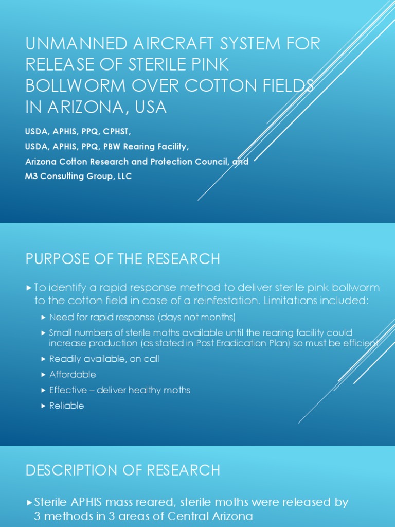To identify a rapid response method to deliver sterile pink bollworm to the cotton field in case of a reinfestation. Limitations included: