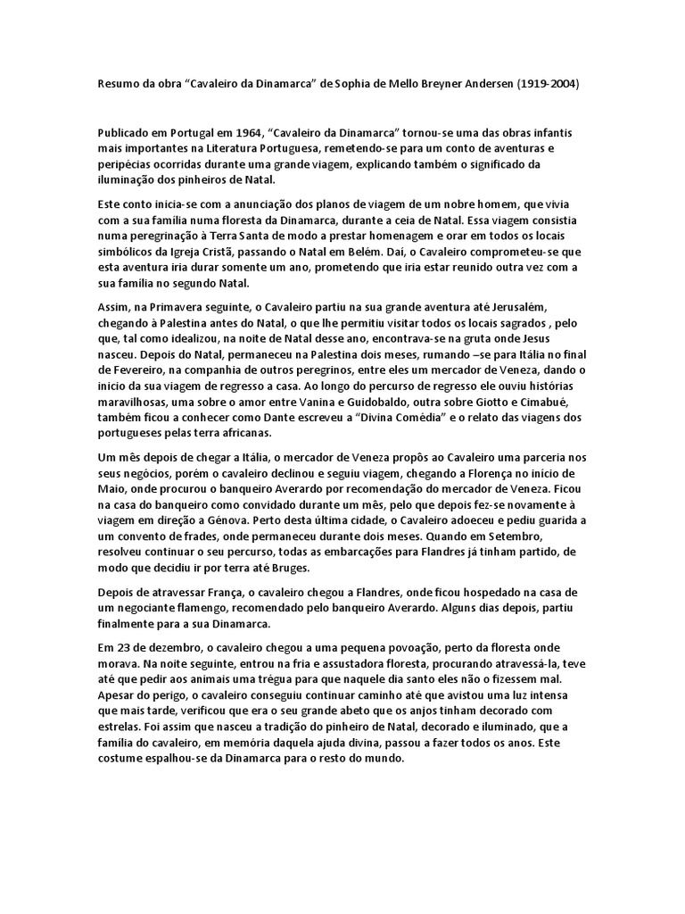 Resumo da obra Cavaleiro da Dinamarca de Sophia de Mello Breyner Andersen (1919-2004)