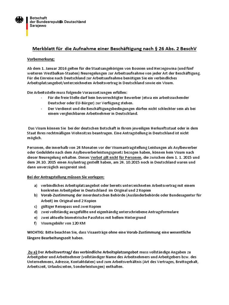 Merkblatt fr die Aufnahme einer Beschftigung nach 26 Abs.