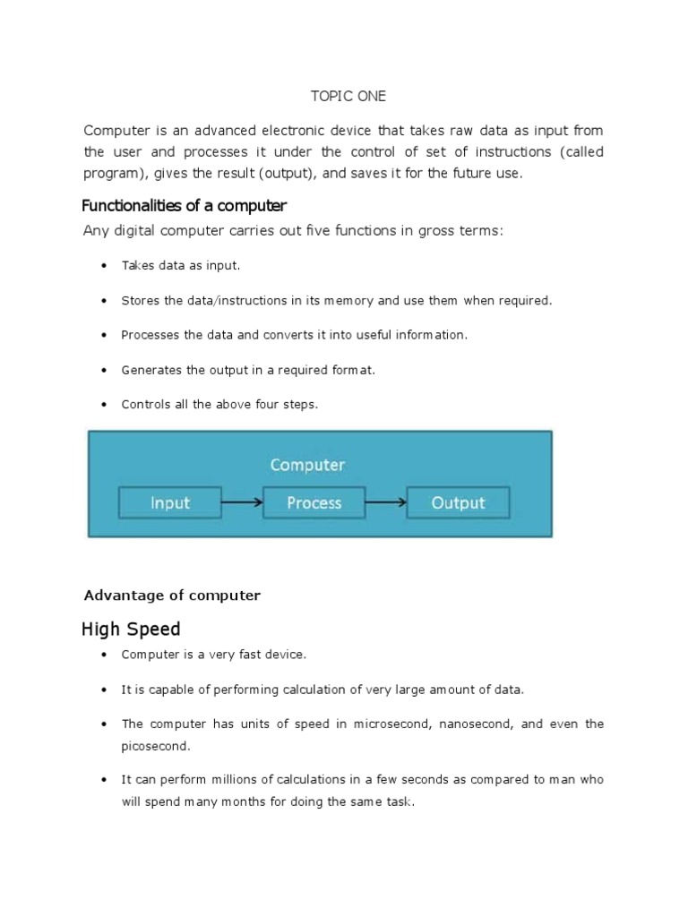 Computer is an advanced electronic device that takes raw data as input from