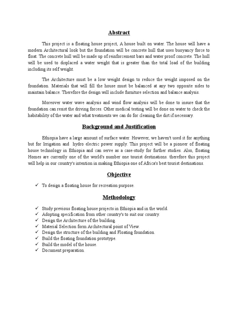 float. The concrete hull will be made up of reinforcement bars and water proof concrete. The hull