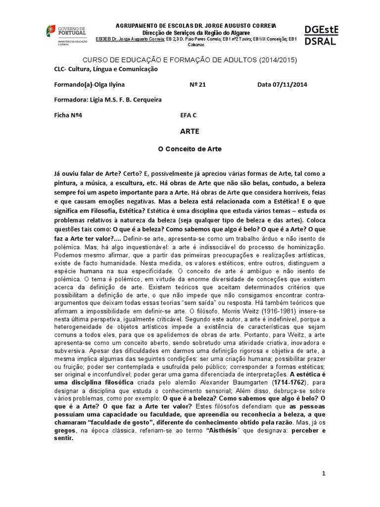 J ouviu falar de Arte? Certo? E, possivelmente j apreciou vrias formas de Arte, tal como a