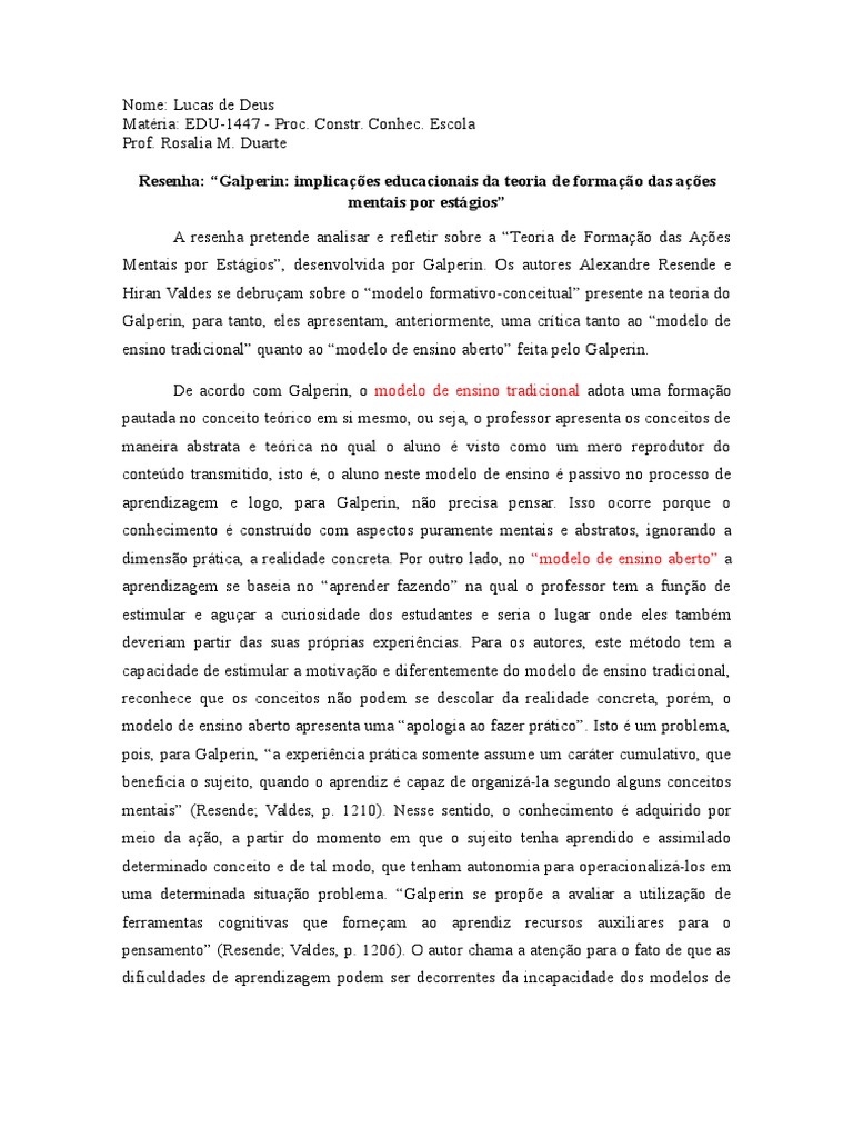 Resenha: Galperin: implicaes educacionais da teoria de formao das aes