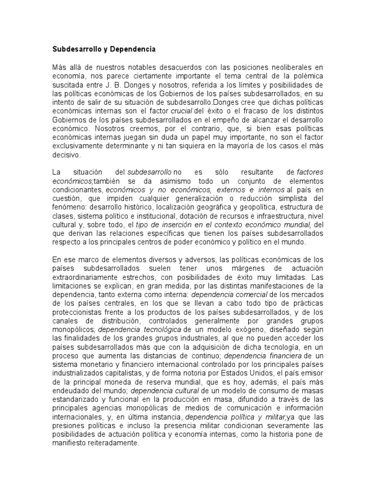 subdesarrollo, y ello no significa quedarse en la mera constatacin del fenmeno.