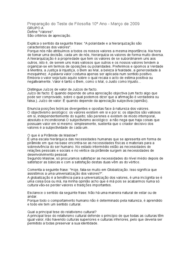 Preparao do Teste de Filosofia 10 Ano - Maro de 2009