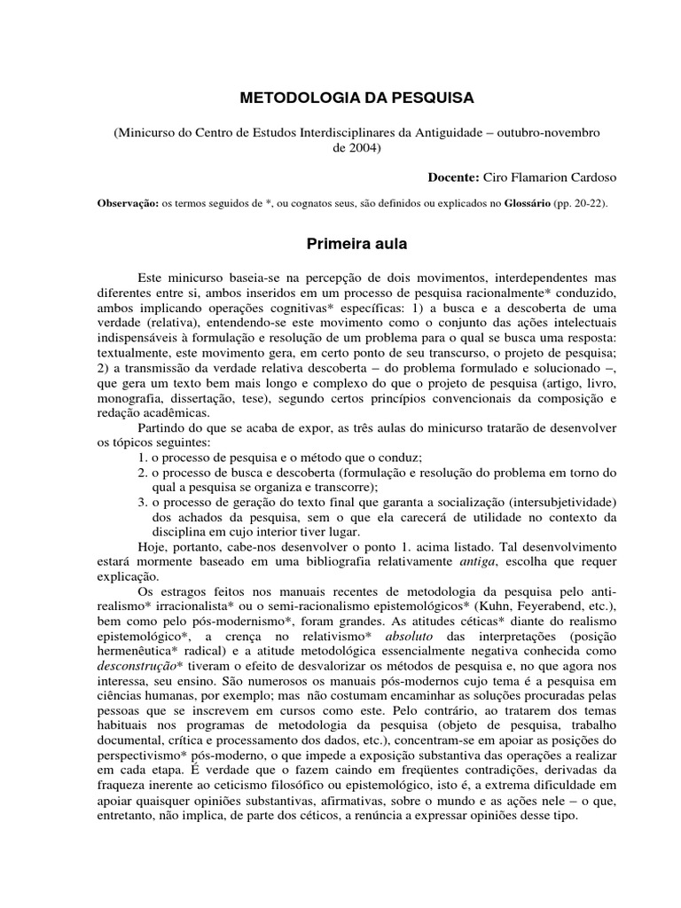 Em linhas gerais, a pesquisa, nas humanidades, deve trilhar um caminho semelhante