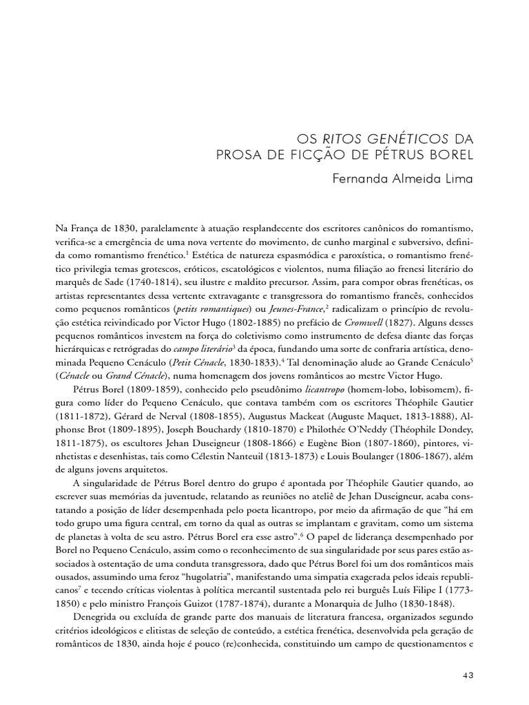 LIMA, Fernanda Almeida. Uma esttica frentica em Champavert le lycanthrope de Ptrus Borel; metfora e grotesco.