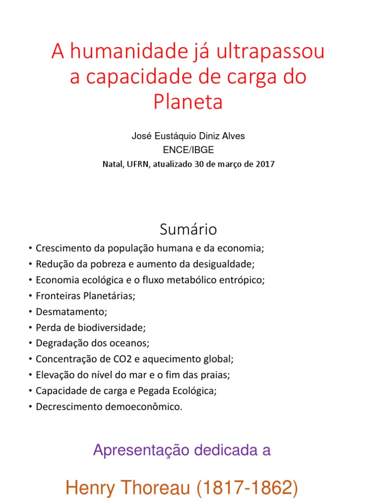 da capacidade de carga do Planeta. Ou dito de outra forma: precisa